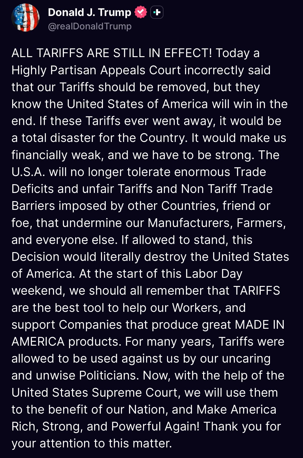 Wow. An appeals court, backing up the Court of International Trade, has just ruled the majority of Trump’s tariffs illegal. We kind of knew this was coming, but the reality still comes as a shock.